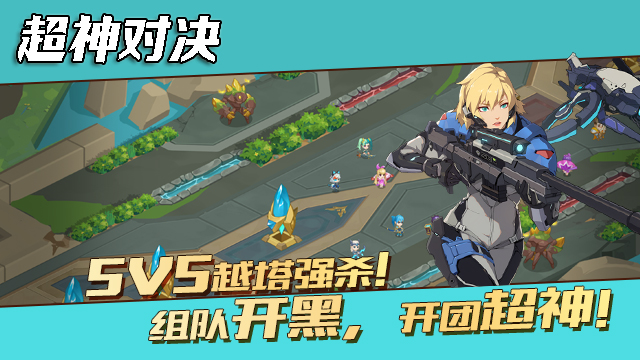 《超神对决》是一款休闲MOBA竞技游戏。 在游戏里玩家将以一个简单Q版的人物形象进入游戏,在游戏里 玩家可以选择多种多样的英雄,每个英雄都有不一样的游戏技能,玩家可以通过击杀敌方来获得金币,购买装备,强化你的人物, 游戏的进展很快,随时随地都能玩上一局,轻轻松松的打完一场游戏。
